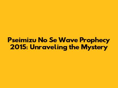 Pseimizu No Se Wave Prophecy 2015: Unraveling The Mystery